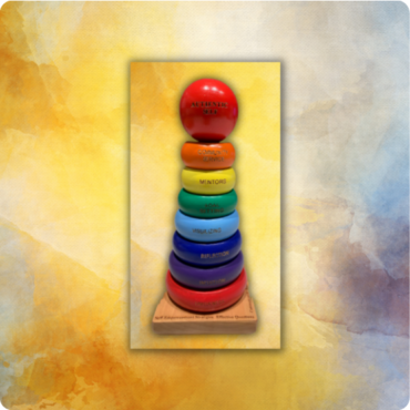 Not long after, I was strolling through Indigo Book store when I spotted the stacking toy. It was the one from my journal. It was a multi-coloured wooden stacking toy. It had 7 colourful rings and a red ball on top. I bought the stacking toy that day and found an engraver who was willing to engrave the 7 life skills, one on each ring. At the top, on the red ball, she engraved the words Authentic Self. Over the years, this stacking toy has adorned many classroom shelves, not just as an attractive decoration but as a tool to teach the 7 Life Skills.